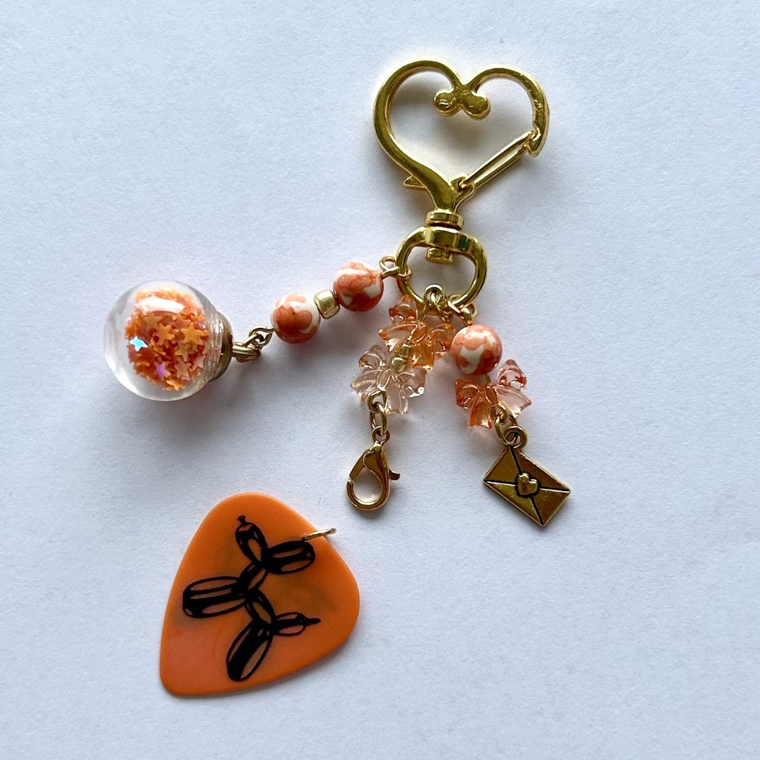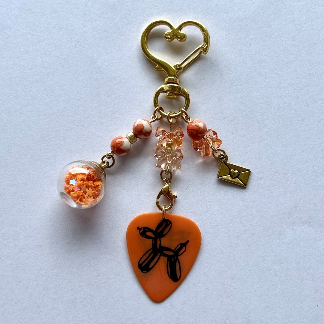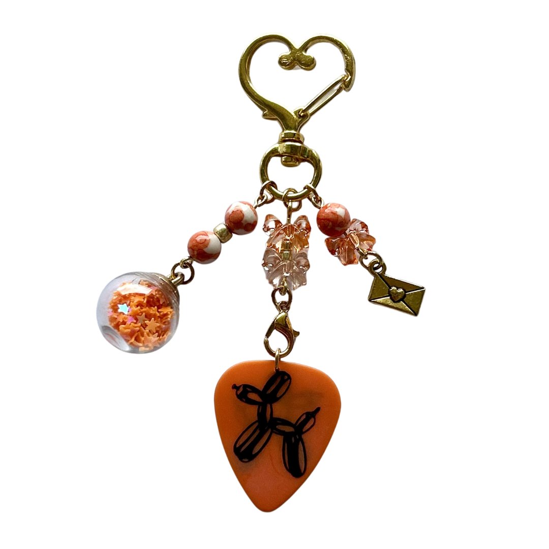 This handmade keyring features a cute detachable guitar pick (for any rock 'n' roll emergencies!) π§‘