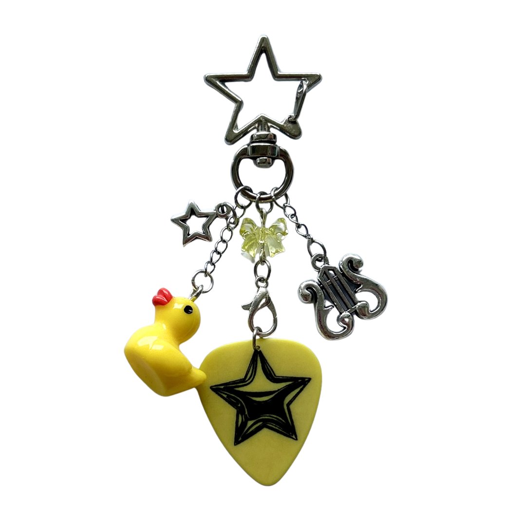 Made with acrylic charms and metal charms, this happy little duck charm is a cute companion to any bag or instrument case. 🐥