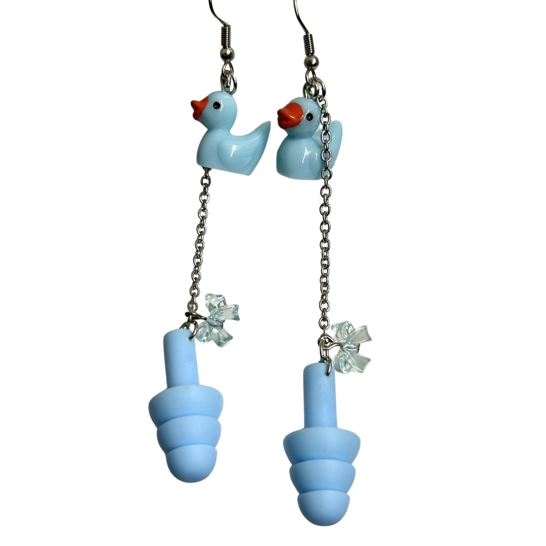 These handmade earrings feature earplugs to protect your hearing (and sanity) from ducks. π₯