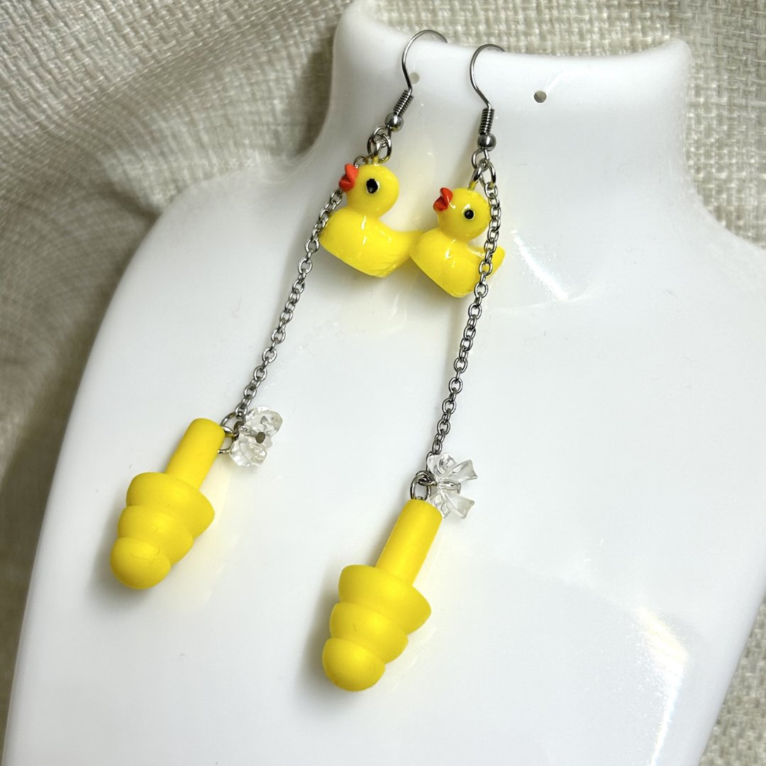 These handmade earrings feature earplugs to protect your hearing (and sanity) from noisy ducks. π₯