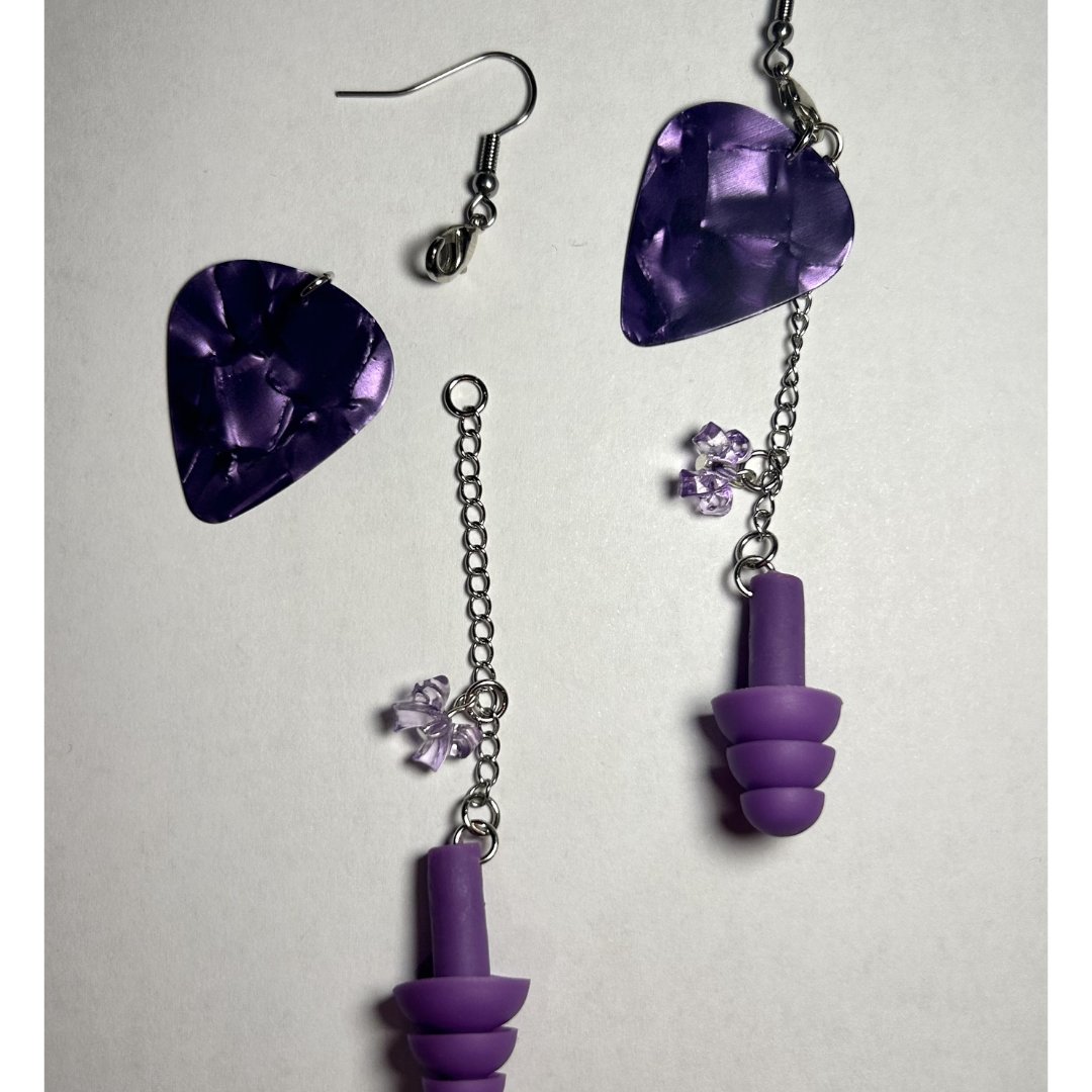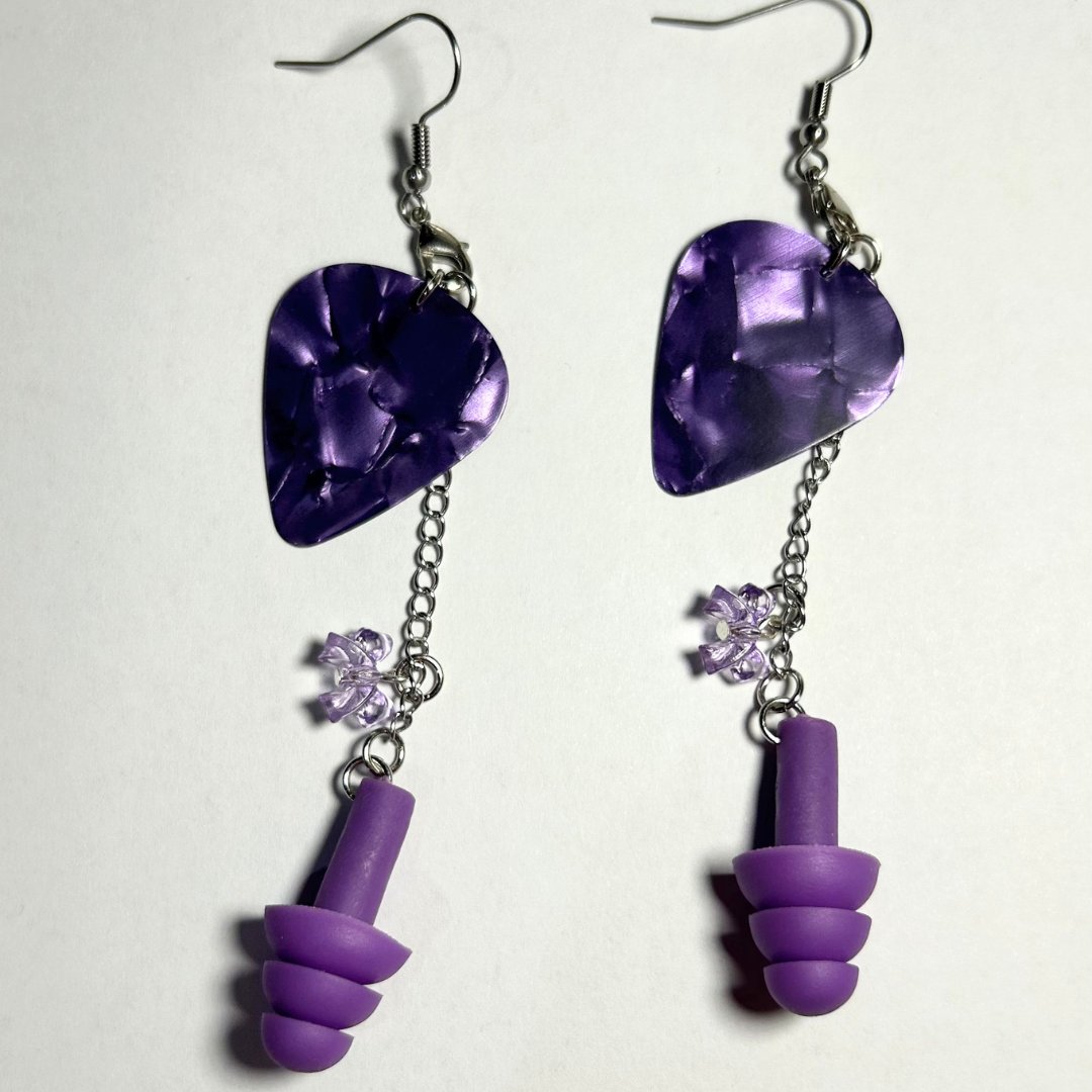 Made with acrylics beads, and silicone earplugs to protect your hearing, vibrant violet earrings are ready to hit the stage or moshpit π