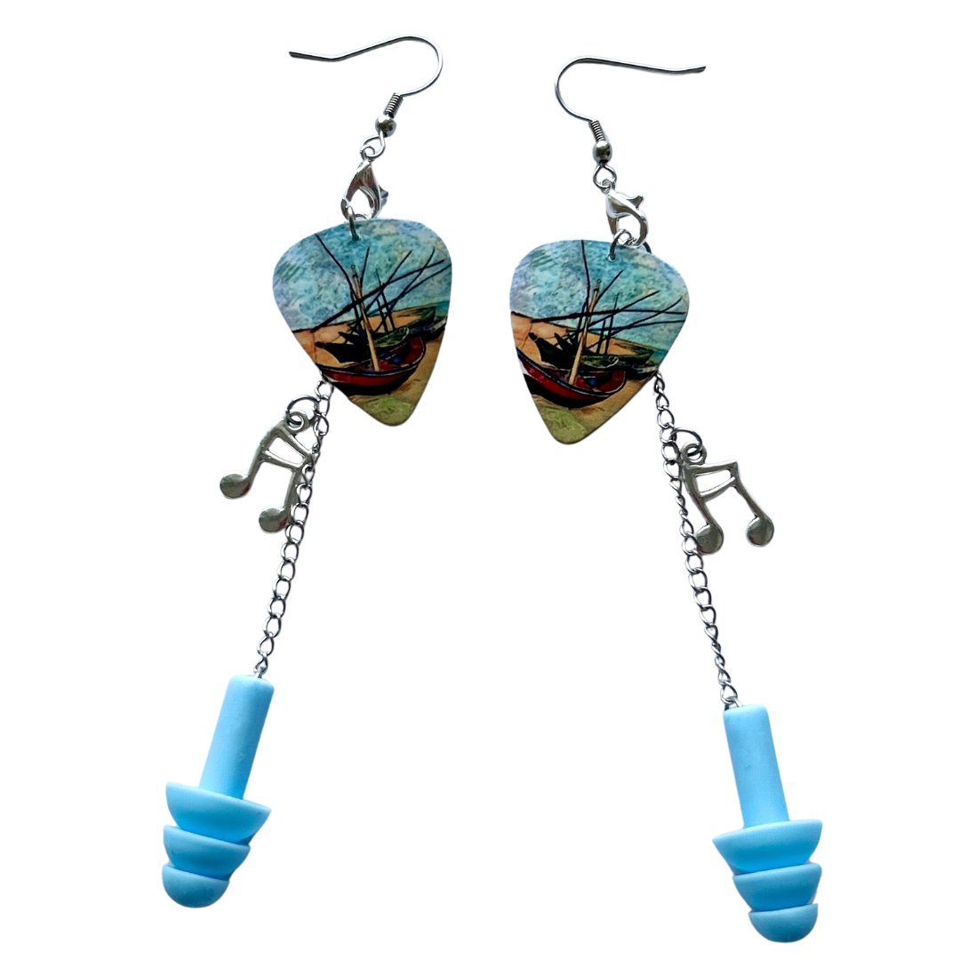 Made with metal charms, and silicone earplugs to protect your hearing, these Van Gogh inspired earrings are ready to 'Gogh' in your jewellery collection π©΅